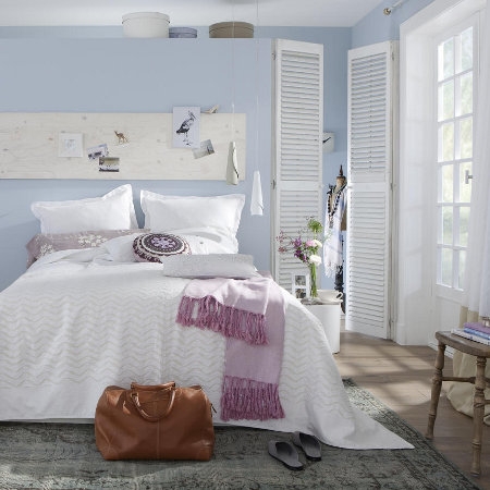 Посмотрите, как можно оформить квартиру с белыми стенами, используя деревянную и аксессуары в нежно-пастельных красках с бирюзовыми акцентами.