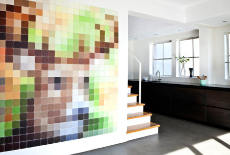 Чего только не придумают дизайнеры… Если из керамической плитки выложить вот такие картины, то получается довольно оригинальный декор стены.